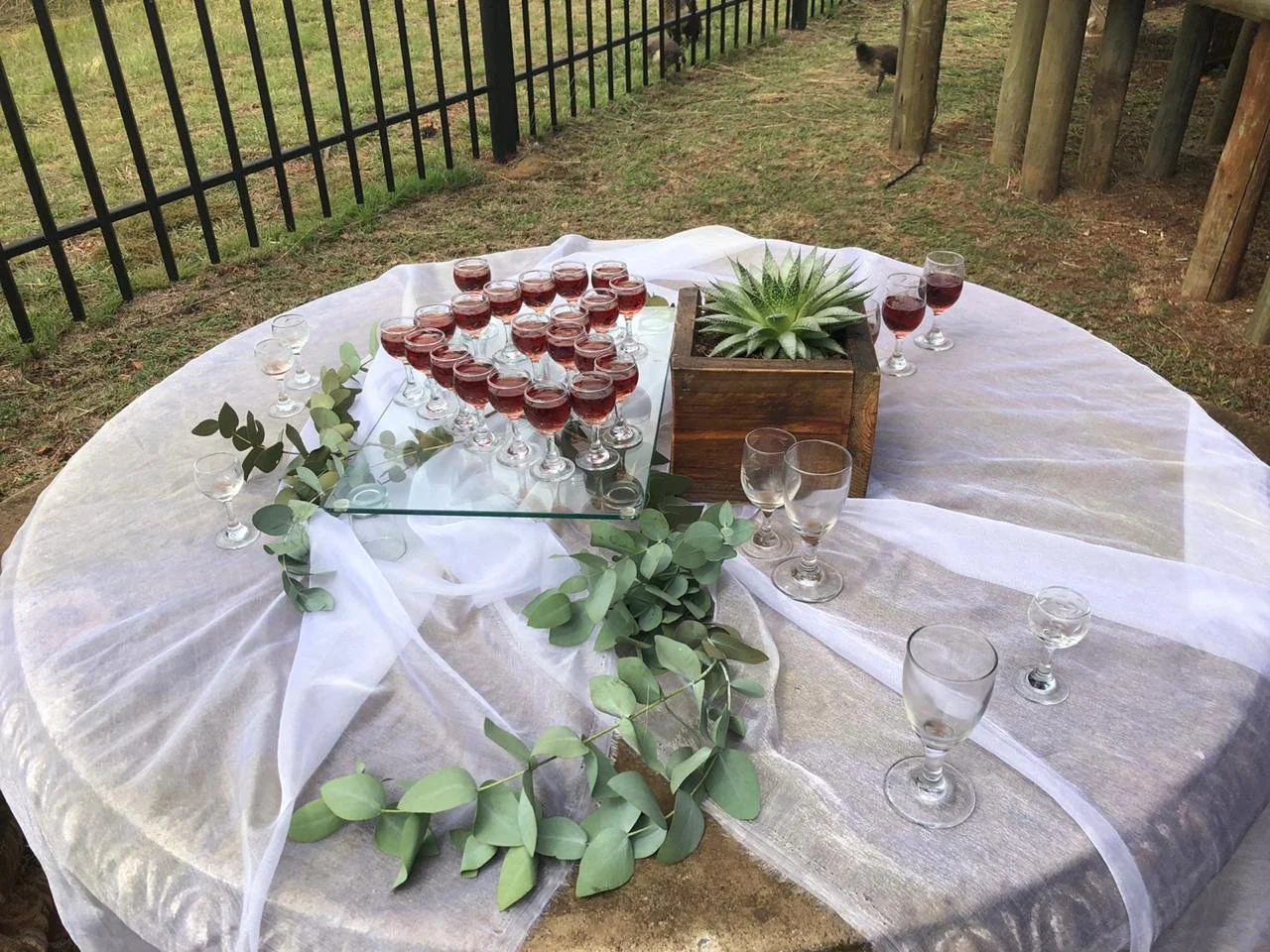 Discover the enchanting allure of Krugerskroon's Deck Pursuit, a secluded venue nestled adjacent to the restaurant, offering captivating views of the small game farm and accommodating up to 40 guests for intimate weddings, themed gatherings, and private events, where the rustic charm and tranquil ambiance create an unforgettable backdrop for your cherished moments.